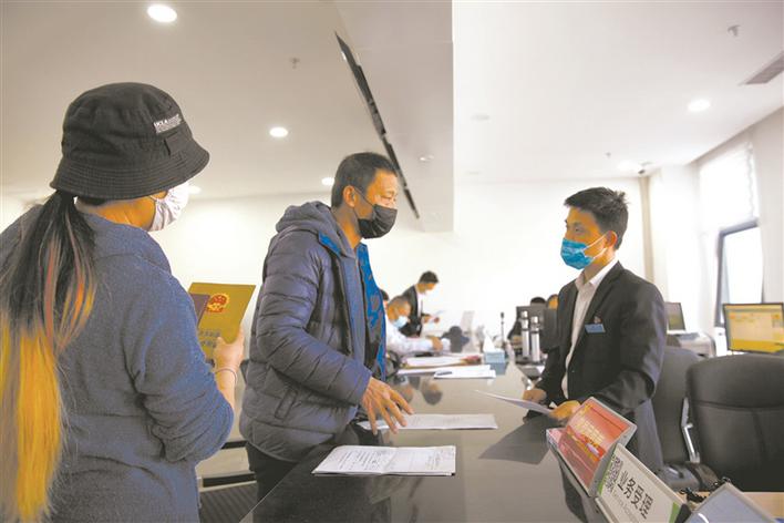 在四师可克达拉市政务服务中心不动产窗口,工作人员在向市民介绍业务办理流程(资料图片)。 杨俊钦 摄