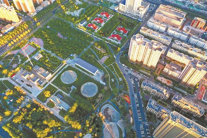 改造后的石河子泽众游园鸟瞰(资料图片)。兵团日报常驻记者 张德智 摄