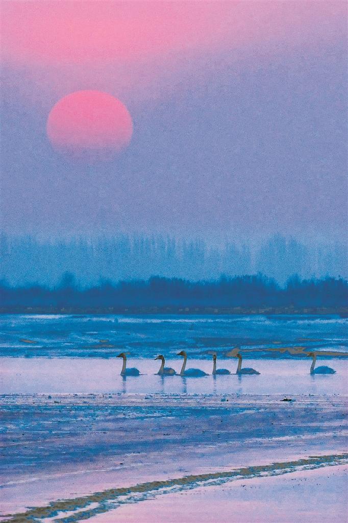 塔里木河日出印象(摄于1月11日)。 李向文 摄