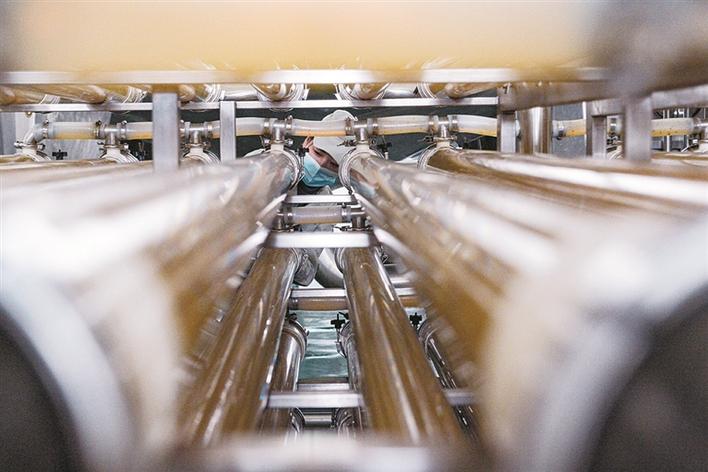 12月14日,阿拉尔经济技术开发区顶鑫果汁有限公司生产车间里,工人在生产线上忙碌。今年,该开发区服务事项审批用时平均减少5.4天,85%的审批服务事项实现了“最多跑一次”。兵团日报全媒体记者 陈洋 摄