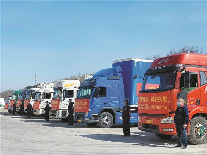 图为4月7日16时,满载援沪抗疫物资的车辆整装待发。兵团日报全媒体记者 麦尔哈巴·坎代尔 摄