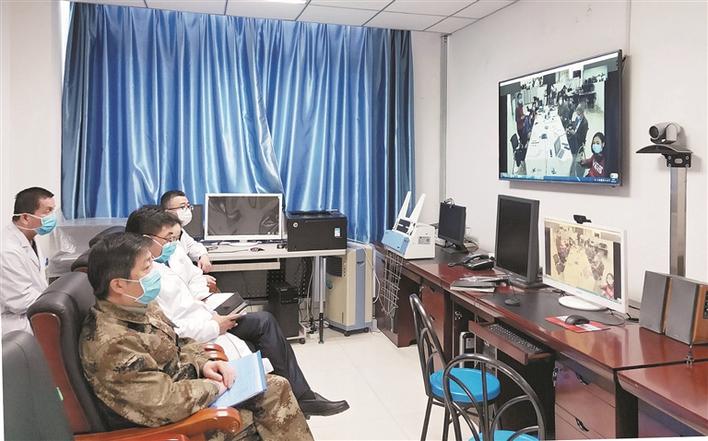 4月7日,七师医院专家团队在医院远程会诊室连线自治区专家组成员,为患者远程会诊。李瑞强 摄