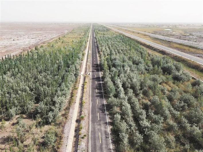 为保护家园和良田免受风沙侵害,多年来,十一团持续推进国土绿化和防沙治沙,加强天然荒漠林封育管护,规模化营造人工防护林,由团场外围向内部依次建造荒漠林、防风固沙基干林、道路林、农田防护林以及居住区绿化林,构筑了四级生态安全屏障。同时,该团通过大力建设特色果品林,形成了独具特色的人工绿洲防护林体系。