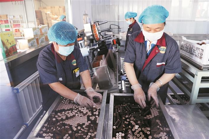 十三师黄田农场梧桐树农副产品专业合作社员工在生产车间里加工沙棘混悬液(资料图片)。今年截至目前,该合作社实现销售收入600万元,提供就业岗位20余个。近年,黄田农场通过资金扶持等方式,大力支持合作社发展,实现职工群众就地就业增收。兵团日报常驻记者 赵宝山 摄