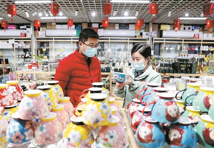 顾客在六师一〇一团南区君豪义乌小商品城选购商品(资料图片)。在君豪义乌小商品城、海宁皮革城、轻纺城等商贸企业的带动下,一〇一团南区大力发展商贸旅游,进一步完善商业格局,优化消费体验,激发商业活力。魏新江 摄