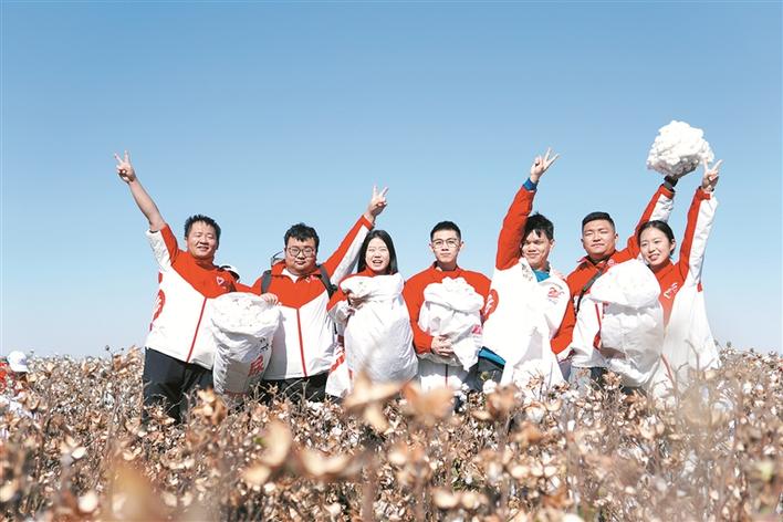 兵团西部计划志愿者在六师共青团农场开展采棉助农实践活动(资料图片)。任瀚飞 摄
