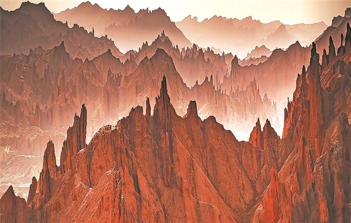 壮丽的库车红山石林景区(资料图片)。王新平 摄