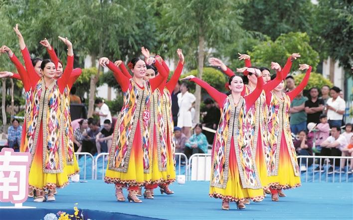 文化广场上,居民们载歌载舞,共庆丰收;生产车间里,工人们并肩劳作,技术交流热火朝天;校园社区内,孩子们手拉手诵读经典,笑脸如石榴花般绽放……今日新疆、今日兵团,各民族广泛交往交流交融,像石榴籽一样紧紧抱在一起,处处流淌着民族团结的暖流,迸发出前所未有的生机与活力。