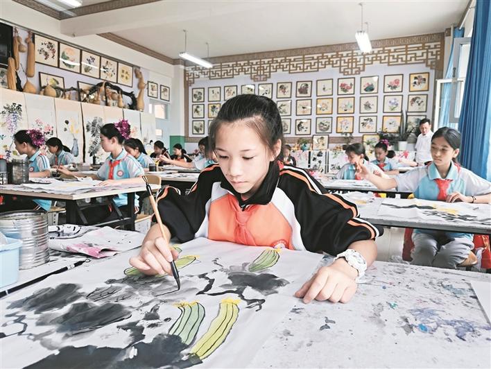 四师六十九团中学学生练习绘画。该校以多民族融合办学为特色,常态化开设“语文+红色革命故事”“思政+爱国主义教育”等课程,推动铸牢中华民族共同体意识进课堂、入人心(资料图片)。