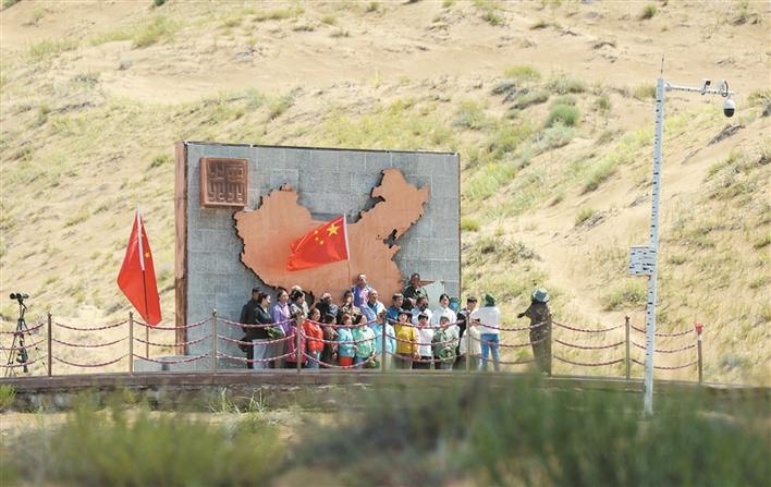 游客在十师一八五团“西北之北”景点拍照留念(资料图片)。