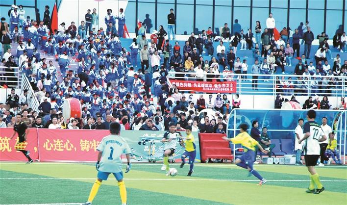 10月1日,观众在新疆“兵超”青少年足球邀请赛现场观看比赛。 兵团日报常驻记者 魏新江 摄