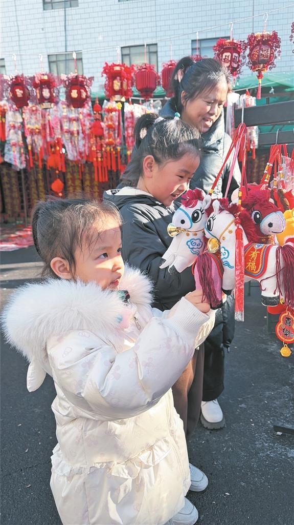 2月5日,九师朝阳新区居民在年货市场挑选“马元素”小饰品。兵团日报常驻记者 苟汇敏 摄